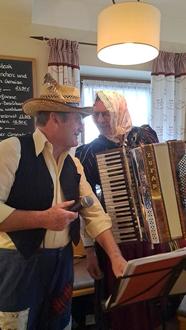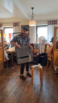 Das Akkordeon Duo, „da Hans und da Sepp“ verstanden es bestens mit ihren bekannten Liedern die Faschingsrunde zum Schunkeln und Mitsingen zu bringen. Hans Lex und Sepp Astner haben den Nachmittag unermüdlich aufgespielt. Natürlich lies es sich der ehemalige Pittenharter Hochzeitslader Ali Schöberl nicht nehmen mit seinen legendären Witzen und Geschichten die Senioren zum Lachen zu bringen.