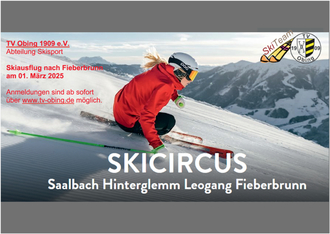 Anmeldungen sind ab sofort über www.tv-obing.de möglich. Bitte denkt beim Parken daran, dass der Bus auch Platz vor der Bank braucht. Über aktuelle Termine und Veranstaltungen kann man sich auf der Homepage der Skiabteilung informieren.