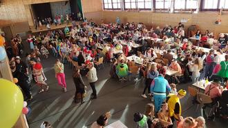 Viele Prinzessinnen, Cowboys, Ausserirdische, Feen und viele andere schön kostümierte stürmten pünktlich um 13.33 Uhr in die Halle. Für das leibliche Wohl sorgten die als Hasen verkleideten Damen vom Gartenbauverein mit Kaffee und zahlreichen Kuchenspenden, Würstel, Pizzabrötchen, und belegten Brötchen. Die Landjugend kümmerte sich um die Getränke. Auf der Galerie baute der Elternbeirat vom Kindergarten Spielestationen für die Kinder auf. Auch Guatl wurden runter in die Menge geworfen und gut aufgefangen. Zwischendurch trat die Priener Kindergarde mit dem Prinzenpaar auf. Das Schnapswagerl mit Irma und Helga war auch wieder schon traditionell unterwegs und versorgte die Erwachsenen mit dem ein oder anderen Stamperl. Nach der Corona bedingten zweijährigen Pause war die Veranstaltung ein voller Erfolg, da manche Kinder den Fasching so noch nicht kannten.