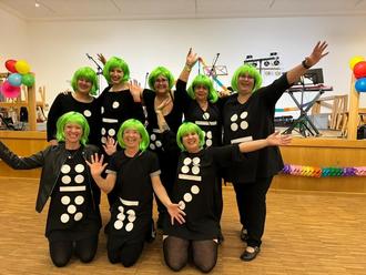 Für die herausragende Stimmung und Musik sorgte den ganzen Abend über die Kienberger „Klara Hauser Band“ mit einem abwechslungsreichen Programm an bekannten Hits aus Rock und Pop. Vom ersten Lied an konnten sie das Publikum mitreißen. Die Tanzfläche war stets gut gefüllt und es wurde laut mitgesungen. Auch in den Bandpausen war für gute Unterhaltung gesorgt. Die Kienberger Turngruppen hatten einige Mitmachtänze einstudiert, die von den Gästen begeistert mitgetanzt wurden. Die Gastgeberinnen überraschten ihre Gäste mit einer Tanzchoreographie zum Lied „Cordula Grün“. Der Saal war begeistert und beklatschte die Aufführung mit Zugaberufen. Anschließend wurde endlich das beste Gruppen- und Einzelkostüm mit ausgefallenen Wanderpokalen prämiert. Diese sollen im nächsten Jahr wieder weitergereicht werden. Gewinnerinnen des schönsten Gruppenkostüms wurden die Mini-Mäuse vom Neuhauser Weg und als bestes Einzelkostüm überzeugte an diesem Abend „Der schwarze Mann“ mit seinem kunstvoll geschminkten Gesicht.