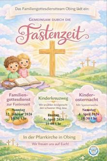 Mein Weg durch die Fastenzeit: Im Pfarrheim in Obing an den Donnerstagen in der Fastenzeit. Beginn 20:00 Uhr.