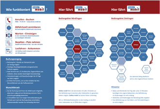 Es ist eine Beförderung im Raum Oettingen von Fremdingen bis Megesheim und von Dornstadt bis Laub möglich. Es kann zwischen allen 200 Haltestellen im Bedienungsgebiet beliebig gefahren werden. Zusätzlich kann ab August 2025 aus der ganzen „Zelle 2 Oettingen“ uneingeschränkt von und nach Nördlingen Brettermarkt, Krankenhaus und Bahnhof, Baldingen EGM und Wallerstein Hauptstraße gefahren werden.