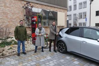 In nur wenigen Minuten Strom für rund 100 Kilometer nachladen: Am Saumarkt in Oettingen, direkt am neu eröffneten Hotel Krone, können ab sofort Elektroautos mit Ökostrom aus der Region geladen werden.