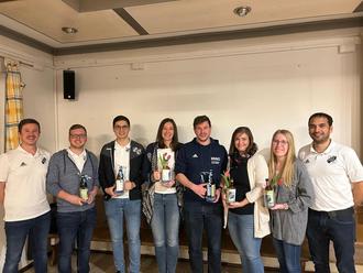 Vorstandsprecher Andreas Mielich, Lukas Fackler (3 Jahre), Jonas Haußner (3 Jahre), Maria Engelhardt (14 Jahre), Albert Mielich (8 Jahre), Claudia Faaß (6 Jahre), Theresa Uhl (6 Jahre) und Vorstand Marc Müller
