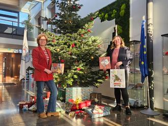 Insgesamt wurden 33 Kinderwünsche benachteiligter Familien von den Bürgerinnen und Bürgern erfüllt. Um die Anonymität der Kinder zu wahren, wurden die Geschenke zunächst im Rathaus abgegeben. Frau Schurlik aus der Abteilung Kultur und Öffentlichkeitsarbeit durfte dann den Weihnachtsengel spielen und die Geschenke rechtzeitig zum Fest verteilen.