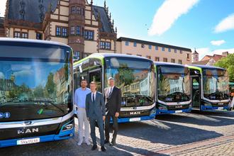 Die Stadtwerke Schweinfurt setzen ihre Elektromobilitätsstrategie fort und stellen vier weitere E-Busse in Dienst, so dass insgesamt sechs Stadtbusse mit batterieelektrischem Antrieb die Fahrgäste klimaneutral und komfortabel befördern.