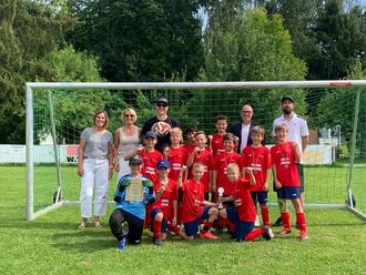 Mit einem Jahr Verzögerung durfte unser Spielführer schließlich, stellvertretend für die ganze Mannschaft, den lang ersehnten Siegerpokal aus den Händen von Schulrat Frank Hagen entgegen nehmen. Der anschließende Jubel bei Spielern, Trainer Christoph Paul wie auch Fans war entsprechend grenzenlos und angeblich noch hoch bis zur Schule zu hören.