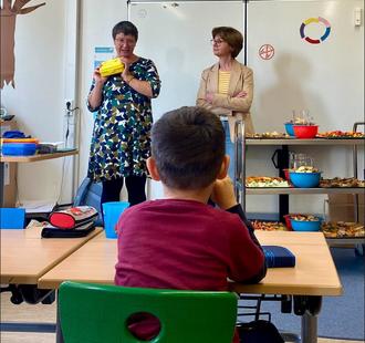 Auch die Bürgermeisterin Bettina Bärmann stattete den ersten Klassen einen Besuch während der Bio-Brotbox-Aktion ab.