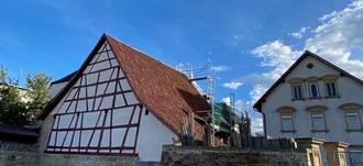 Die Fortschritte der Scheunensanierung sind auch von außen sichtbar