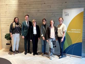 Im Bild, von links: Gleichstellungsbeauftragte Verena Markert, Landrat Florian Töpper, Bürgermeisterin Bettina Bärmann, die Referentinnen Dr. Elisabeth Kiesel und Katja Schenker sowie Gleichstellungsbeauftragte Dr. Selma Rienecker