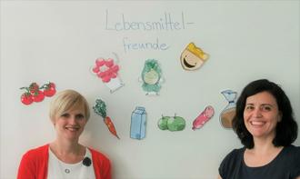 Carolin Schrott und Jacqueline Köhler besuchten die Drittklässler mit den Lebensmittelfreunden.