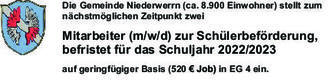 Für Datenschutzinformationen besuchen Sie bitte unsere Homepage www.niederwerrn.de. Für telefonische Auskünfte steht Ihnen unsere Personalleitung, Frau Volkmer, unter 09721/4999-52 gerne zur Verfügung. Reisekosten werden nicht erstattet.
