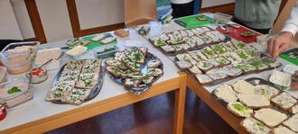Am Dienstag, den 06.12.2022, trafen sich Vertreter des Elternbeirats der Hugo-von-Trimberg-Grund- und Mittelschule, um den Schülerinnen und Schülern ein gesundes Frühstück zu bereiten. Tatkräftig wurden sie dabei von den Schülerinnen und Schülern unseren beiden 8. Klassen unterstützt. Mit sehr viel Engagement wurde geschält, geschnippelt, gestrichen und geschmiert. Schnittlauchbrote, Gemüsesticks, leckere Aufstriche, Obst, Müsli und noch andere leckere Sachen luden die Schülerinnen und Schüler ein, sich am Buffet zu bedienen. Im Vorfeld hatten sich die Klassen darum gekümmert, dass die benötigten Nahrungsmittel bereitstanden. Diese wurden morgens im Musikzimmer bei den Elternbeiräten abgegeben. Wie auch schon in den letzten Jahren war das gesunde Frühstück ein voller Erfolg und viele freuen sich schon auf unsere nächste Aktion im Frühjahr.