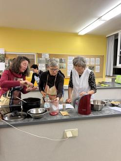Eine Dreiergruppe verfeinert das Kichererbsen-Chili - zum Genuss aller Teilnehmenden