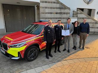 (von links): Kreisbrandrat Holger Strunk, ÖEL Ralf Weippert, Landrat Florian Töpper, Sonja Weidinger (Abteilungsleiterin Öffentliche Sicherheit und Ordnung) und Florian Zippel (Arbeitsbereichsleiter Katastrophenschutz und Feuerwehrwesen)