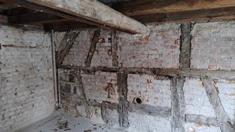Freilegung des Wandaufbaus im Zuge der Sanierungsarbeiten.
