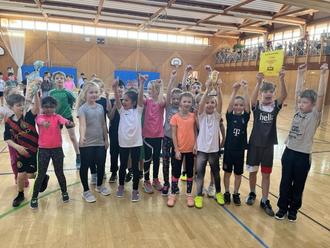 Zum Schluss bleibt festzuhalten: Während des kompletten Spieltages feuerten sich die Klassen gegenseitig an und waren treue Fans mit selbstgestalteten Plakaten. Neben dem sportlichen Erfolg ist doch die Freude und der Zusammenhalt beim Sport ungemein wichtig. Beides war an diesem Sporttag der Hugo-von-Trimberg-Grundschule deutlich spürbar! Vielen Dank für das tolle Turnier!