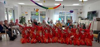 Die tollen Tage in der Tagespflege Niederwerrn waren von abwechslungsreichen Besuchen geprägt. Die Mitarbeitenden und auch die Gäste kamen verkleidet. Das Programm war vielfältig: Die Schweinfurter Antöner Tanzgarde führte einen großartigen Tanz vor.