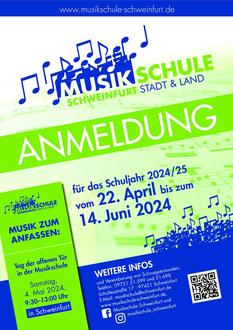 Neuinteressenten melden sich bis spätestens 14. Juni im Sekretariat der Musikschule Schultesstr. 17 an. Über die Homepage www.musikschule-schweinfurt.de ist die Anmeldung sicher und bequem auch von daheim aus möglich. Die Altschüler der Musikschule bekommen die Unterlagen für ihre Weitermeldung von ihrem jeweiligen Instrumentallehrer und geben sie diesem zurück.