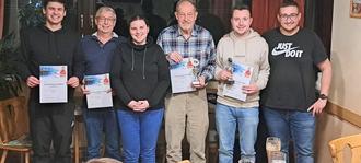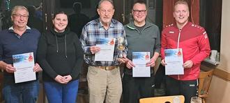 Die Erstplatzierten im Einzel v.l. Matthias Göring, 1. Vors. Stefanie Kübrich, Gerhard Wachter, Gerd Hornfeck, Benjamin Stumpf.