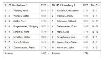 Zum Jahresbeginn hatte der FC Nordhalben die SG Sonneberg zu Gast. Nach 3 schnellen Punkteteilungen durch Sven Müller, Wolfgang Burgemeister und Hans Scherbel folgte die Niederlage von Hilmar Stumpf gegen Jacob Klaus Dieter. Frank Zimmermann konnte nach Bauerngewinn seinen Gegner John Herrmann zur Aufgabe zwingen. Von den letzten 3 Partien hatte nur Stefan Wunder Materialvorteil. Doch als Dieter Schultes gegen Uwe Neubauer aufgeben musste, stellte auch Stefan seine Partie einzügig ein. Am Spitzenbrett hatte Horst Wunder einen schweren Stand gegen Christopher Hartleb. Erst im Damenendspiel konnte der Sonneberger Vorteil erzielen und Horst zur Aufgabe zwingen.