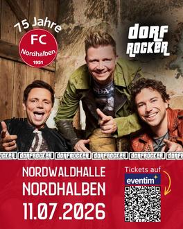 Am Samstag, 11.07. spielen zu unserem Jubiläum die DORFROCKER in der Nordwaldhalle. Wir sind sehr stolz, dass eine so bekannte Musikgruppe mal wieder in unserer Nordwaldhalle spielt. Sichert euch jetzt schon die Tickets auf Eventim.de. Wir werden natürlich auch Vorverkaufsstellen in Nordhalben und Umgebung organisieren. Tragt euch den 11.07. also deshalb schon mal fett in den Kalender ein. Wir freuen uns schon.