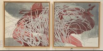 Geflechte, geschnitten in Holz, ziehen sich übers Papier, fügen sich zu Knäueln, bilden Liniengefüge, ziehen sich als lose Enden durch die Komposition. Es entstehen Spuren, die ich dem Trägermaterial, meist Holz, abringe,erst im Druckstock, dann spiegelverkehrt sichtbar geworden im Druck, auf dem Papier, das immanenter Teil des Werkes ist. Die Schnitte müssen präzise sitzen, Fehler beim Schneiden verzeiht das Holz nicht. Passiert es trotzdem, überarbeite ich die angedachte Komposition. Eine Form der Spurensuche. Gefundenes, wie geknüllte Bänder, Schnüre, zerrissene Netze oder Pflanzenreste, eigentlich meist unbedacht Weggeworfenes, Verlorenens oder einfach Alltägliches, das dem ungeübten Auge erst garnicht auffällt, regen seit vielen Jahren meine Fantansie zu zahlreichen Skizzensequenzen an, die mir als unendlicher Ideenreichtum zu abstrakten Kompositionen dienen. Farbe und Form korrespondieren, treten ein in einen Dialog. Ausbrüche stören vermeintliche Harmonie. Es entstehen Farb-Formgefüge. Mehrere teils transparente Farbschichten liegen übereinander, bilden Fenster, Gitter, Raster, bilden Raum. Es entstehen Serien dieser gefundenen Spuren des Alltags, die ich in Kleinstauflagen meist auf Washi, handgeschöpftem japanischem Papier, mit klassischen Öldruckfarben von Hand drucke. Es ist meine Art des Nachdenkens über die Wahrnehmung der Umwelt und deren Wiedergabe.