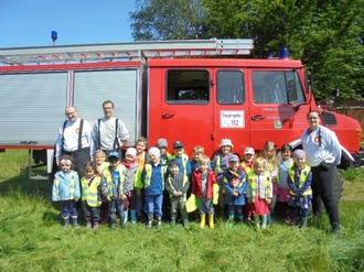 Ebenfalls bekamen wir Besuch von der Freiwilligen Feuerwehr Nordhalben. Herr Pöhnlein, Herr Hänel und Frau Simon erklärten den älteren Kindern unserer Regelgruppe alles Wichtige zur Feuerwehr. Dabei lernten wir die verschiedene Ausrüstung eines Feuerwehrmannes und deren Funktion sowie die verschiedenen Aufgaben der Feuerwehr besser kennen.