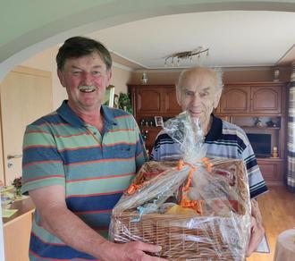 Übergabe eines Präsentkorbes an Karl Hartenstein für 40 Jahre SPD-Mitgliedschaft im Namen des SPD Ortsvereines Nordhalben-Heinersberg.