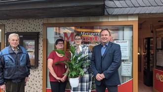 Bild von links: Hauseigentümer Andreas Dauer, Frau Schlafke und Frau Semler von der Metzgerei Mantel und erster Bürgermeister Michael Pöhnlein.