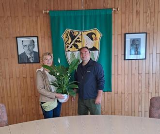Mit einem Blumenpräsent bedankte sich Bürgermeister Michael Pöhnlein für das langjährige Engagement bei Frau Daniela Wunder.