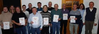Im Rahmen der Vorweihnachtsfeier im Gasthaus Wagner ehrte unser ATSV-Spielmannszug langjährige Spielleute, die zusammen nahezu 600 Jahre durchgehend aktiv sind. Stabführer Helmut Beetz konnte in seinem Rückblick weitere beeindruckende Zahlen aus dem zurückliegenden Jahr nennen. An den 20 Auftritten nahmen im Schnitt 17 Mitglieder teil - bei insgesamt noch 29, zu denen mittlerweile Weggezogene und auswärtig Tätige gehören, eine ansprechende Beteiligung. Der feste Stamm besteht aus rund 20 Spielleuten. Ohne regelmäßige Proben ist das hohe musikalische Potential und das breite Repertoire nicht aufrecht zu erhalten. Beides ist für einen Turnerspielmannszug in Bayern fast schon einmalig, die Spielleute könnten daher zurecht stolz auf ihr Können sein! Die gegenseitige Verlässlichkeit und Kameradschaft, für Einige bereits seit über 60 Jahren, ist dafür die Grundlage, unterstrich der Abteilungsleiter. Für das kommende Jahr wurden bereits wieder elf Termine fest gebucht, dazu ein Gastspiel auf dem Kronacher Landesgartenschaugelände. Wenig erfreulich sind die mittlerweile stark gestiegenen Verpflegungspreise bei den Veranstaltungen, die eine Begleitung der ganzen Familie zu einer teuren Angelegenheit machen. Er dankte daher den Angehörigen, ihre Spielleute neben den Probenzeiten auch zu den Auftritten „freizustellen“. Eine Anpassung der vertraglichen Gage wäre nun unumgänglich gewesen. ATSV-Vorsitzender Bernd Sorgenfrei hob die Zuverlässigkeit bei allen vereins- und gemeinschaftsöffentlichen Veranstaltungen hervor und führte mit dem Stabführer die Ehrungen mit Dankesurkunden aus.