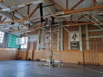 Die Firma Eberlein aus Bad Steben hat in der vergangenen Woche mit der Umrüstung der Beleuchtung der Sporthalle begonnen. Sobald die Arbeiten abgeschlossen sind, werden wir die Nordwaldhalle für den normalen Sportbetrieb wieder freigeben.