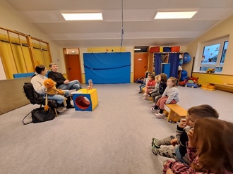 Im Januar besuchte uns der Zahnarzt Dr. Fehn mit seiner Frau. Im Gepäck hatte er Leo Löwe, der den Kindern auf kindliche Art und Weise mit der Geschichte „Als der Frosch Zahnschmerzen hatte“ die richtige Zahnpflege erklärte. Die Kinder waren erstaunt, wo sich überall „Zuckerteufel“ verstecken und wie krank sie unsere Zähne machen können. Im Gespräch mit den Kindern klärten wir, welche Lebensmittel gut für unsere Zähne sind und welche weniger und wie oft man Zähne putzen sollte. Zum Schluss erhielt jedes Kind ein Zahnputzset, sowie wichtige Infos für die Eltern. Herzlichen Dank an Herrn und Frau Fehn für ihren Besuch.