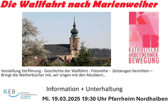 Herzliche Einladung zur KAB-Erwachsenbildungsveranstaltung „Die Wallfahrt nach Marienweiher“.