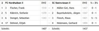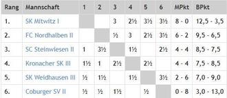 Der FC Nordhalben 2 verlor somit die Tabellenführung und muss gegen den neuen Tabellenführer SK Mitwitz 1 einen hohen Sieg erzielen, damit es mit der Meisterschaft noch etwas werden soll.
