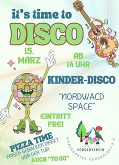 Am 15.3. ab 14 Uhr (im Anschluss an den Frühjahrsbasar des Schulfördervereins) verwandelt sich der Nordwald Space in eine bunte Disco!