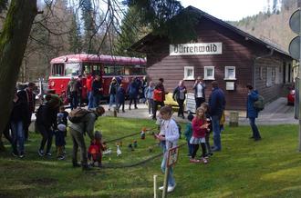 Am Ostersonntag und Ostermontag verkehrt wieder der Osterhasenexpress auf der Museumsbahn Steinwiesen - Nordhalben. Die Fahrgäste erwartet eine gemütliche Fahrt mit dem roten Brummer im Stil der 1960er-Jahre durch das vorfrühlingshafte obere Rodachtal. Für die jüngsten Fahrgäste hat der Verein eine besondere Überraschung parat. Unterwegs hält der Zug traditionell zum Osternestersuchen an. Am Bahnhof Nordhalben erwartet die Fahrgäste ein bewirtschaftetes Rahmenprogramm mit Steaks und Bratwürsten vom Grill sowie Kaffee und Kuchen in den beiden beheizten Speisewagen. Bei schönem Wetter ist der Biergarten geöffnet.