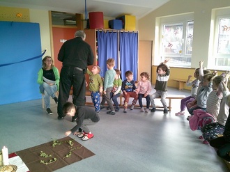 Am Gründonnerstag besuchte Herr Ulbrich die Kinder der Regelgruppe zum Kinderkreuzweg. Er erklärte und verbildlichte den Kreuzweg auf kindgerechte Art und Weise. Die Kinder durften sich auch aktiv am Legen der einzelnen Stationen beteiligen. Dazwischen wurden immer wieder gemeinsam Lieder gesungen. Herzlichen Dank an Herrn Ulbrich.