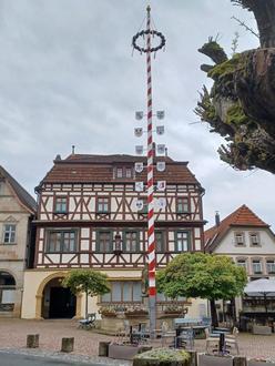 In Ebern wird der Maibaum schon immer auf städtischen Wunsch hin durch die örtliche Feuerwehr am Marktplatz aufgestellt.