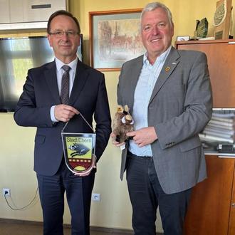 Nach 25 Jahren des Schüleraustauschs zwischen dem Friedrich-Rückert-Gymnasium (FRG) und dem Karol-Miarka-Lyzeum in Żory war es Zeit, einen offiziellen Besuch beim Bürgermeister von Zory vorzunehmen. Bürgermeister Jürgen Hennemann begleitete für 3 Tage die Schülerinnen und Schüler des FRG beim Gegenbesuch nach Polen, nachdem im Oktober bereits eine polnische Schülergruppe das 25-jährige Jubiläum in Ebern gefeiert hatte. Der überaus herzliche Empfang an der Schule durch die Schulleitung stimmte auf einen erlebnisreichen Besuch ein. Beim offiziellen Besuch beim Oberbürgermeister Waldemar Socha, dort Stadtpräsident, der an der Spitze der Verwaltung steht, wurden die aktuellen Probleme ausgetauscht. Diese ähneln sich, was die unzureichende Finanzierung der Gemeinden angehe. Man sei auf Fördermittel und Projektprogramme angewiesen. Auch fehlten Wohnungen. Bei der rasanten Entwicklung der Stadt, die nach dem 2. Weltkrieg um das Zehnfache gewachsen ist, ist dies kein Wunder. Heute sind es 60.000 Einwohner. Waldemar Socha ist seit 1998 im Amt und wurde am Sonntag vor dem Termin des Bürgermeisters zum 5. Mal mit absoluter Mehrheit wiedergewählt. Jürgen Hennemann konnte zur Wiederwahl gratulieren. Der Oberbürgermeister hat die Stadt Zory (Sohrau) zur modernen Stadt mit viel EU Fördermitteln ausgebaut, wie er sagte. Auch habe man in der Stadt über 5000 ukrainische Flüchtlinge aufgenommen, die vielfach in Beschäftigung sind. Beide Bürgermeister sind stolz auf den bereits 25 Jahre andauernden Schüleraustausch und sprachen sich für weitere Unterstützung und Fortsetzung aus, was die zur Übersetzung begleitende Deutschlehrerin Barbara Barglik und Hauptverantwortliche für den Austausch auf polnischer Seite sehr freute. Nach Austausch von Geschenken hat Bürgermeister Jürgen Hennemann seinen Amtskollegen zum Besuch nach Ebern eingeladen. Neben der Teilnahme an Besichtigungen in Zory in dem modernen Heimatmuseum, einem Schloss mit Einblicken in die polnisch-schlesischen Trachten und Volkstänze, wurde die Infrastruktur (moderner Busbahnhof und kostenloser Busverkehr, großes Büchereizentrum) und der Marktplatz der Stadt in Augenschein genommen.