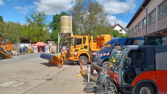 Beim Tag der offenen Tür im Bauhof der Stadt Ebern stellten sich die VG-Bauhöfe mit ihren Arbeitsbereichen und Leistungsumfang der Bevölkerung dar. Von der ökologischen Grünpflege, über den Spielplatzunterhalt mit Sicherheitskontrollen und Straßeninstandhaltung, bis zum Winterdienst konnten viele Bereiche aufgezeigt werden. Viele Maschinen und Geräte, auch von Partnerfirmen, wurden ausgestellt und waren von Groß und Klein zu bestaunen.