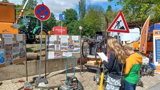 Besucher auf der Suche nach der Lösung für die Quizfrage zur Baustellenabsicherung