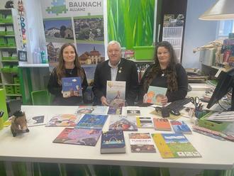 Anlässlich des Welttags des Buches wurden in der Stadtbücherei Ebern offiziell Bücher übergeben - mit dabei: Bürgermeister Jürgen Hennemann und Leiterin der Stadtbücherei Andrea Bols. Die Buchübergabe ist Teil eines längerfristigen Projekts der Baunach-Allianz zur Stärkung der Städtepartnerschaft mit der tunesischen Gemeinde El Maâmoura.