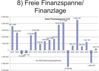 Wegen der guten Bewirtschaftung der Haushaltsmittel in den letzten 10 Jahren und weil sich im Haushalt vorgesehene und finanzierte Projekte verschoben haben, haben wir noch Rücklagen von 3,5 Mio. Euro, die wir jetzt einsetzen können und wir haben Schulden abbauen können von rund 8 Mio. Euro 2015 auf rund 4 Mio. Euro 2024. Nur so haben wir Spielraum für Kreditaufnahmen für die Investitionen.