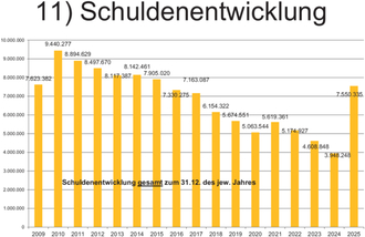 Die knappe Finanzausstattung wird sich jedoch in den nächsten Jahren fortsetzen, sodass die weiteren Investitionen im Bereich der Infrastruktur (Straßenbau u.a.) nur Zug um Zug abgewickelt werden können. Die Liste ist lang und es sind nur notwendige Umsetzungen möglich, für Wünschenswertes bleiben keine Finanzmittel. Es ist ein solider Haushalt, der leider keine weiteren Spielräume zulässt.