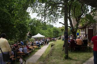 Ein weiterer Anziehungspunkt war der idyllische Wolzngarten an der Stadtmauer, der zum Verweilen einlud. Hier richtete der Bürgerverein Ebern zeitgleich sein traditionelles Wolzngartenfest aus, das heuer freilich aufgrund des Andrangs etwas größer ausfiel. Bei Bratwürsten, kühlen Getränken und tollem Flair legten viele Gäste hier eine Pause ein.