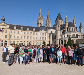 Die Reisegruppe vor der Männerabtei Saint Etienne in Caen.