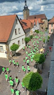 Was war da am Marktplatz los? Viele grüne Männchen in Ebern und stark in Bewegung, fragten sich Passanten am Marktplatz zum Schüler-Spendenlauf des FRG durch die Altstadt. Viele Runden wurden an einem Vormittag zurückgelegt, um möglichst viele Spenden für soziale Projekte zu sammeln. Einige liefen die Runden als Spaziergang, andere joggten bis zur letzten Minute. Bürgermeister Jürgen Hennemann gab den Startschuss zum Spendenlauf im Beisein von Direktor Martin Pöhner und Peter Tlusty, Chef der Prager Partnerschule. Auch Schülerinnen und Lehrerinnen aus Prag, die sich auf Austausch in Ebern befanden, waren mit am Start. Die Spenden gehen neben einem UNESCO-Projekt auch an das Projekt Fahrradrikscha des katholischen Dekanats und der Baunach-Allianz am Altenheim Ebern und Baunach. "Eine super Aktion der Schule und der Schülermitverwaltung, die für sportliche Fitness sorgt und für einen guten sozialen Zweck spenden sammelt", lobte Jürgen Hennemann bei der Begrüßung die Organisationen und teilnehmenden Schüler aller Jahrgangsstufen. jh