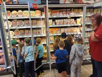 Anfang Juni besuchten die Vorschulkinder der Kita Pfiffikus die Rewe in Ebern. Dort angekommen begrüßte uns Andrea Schrempf. Im Anschluss zeigte sie uns ihr Büro, den Rewe-Markt mit Obst- und Gemüsetheke, die Molkereiprodukte im Kühlregal und noch vieles mehr. Dann ging es weiter in den Getränkemarkt, wo wir uns die Leergutautomaten genauer anschauten und anschließend die Kistenrutsche betrachteten und beim Sortieren der Kisten halfen. Spannend für die Kinder war auch die Altpapierpresse, in die die Kinder leere Kartons werfen durften und die Kühlräume, in denen es sehr kalt war. Nach der Führung machten wir es uns im Pausenraum gemütlich.